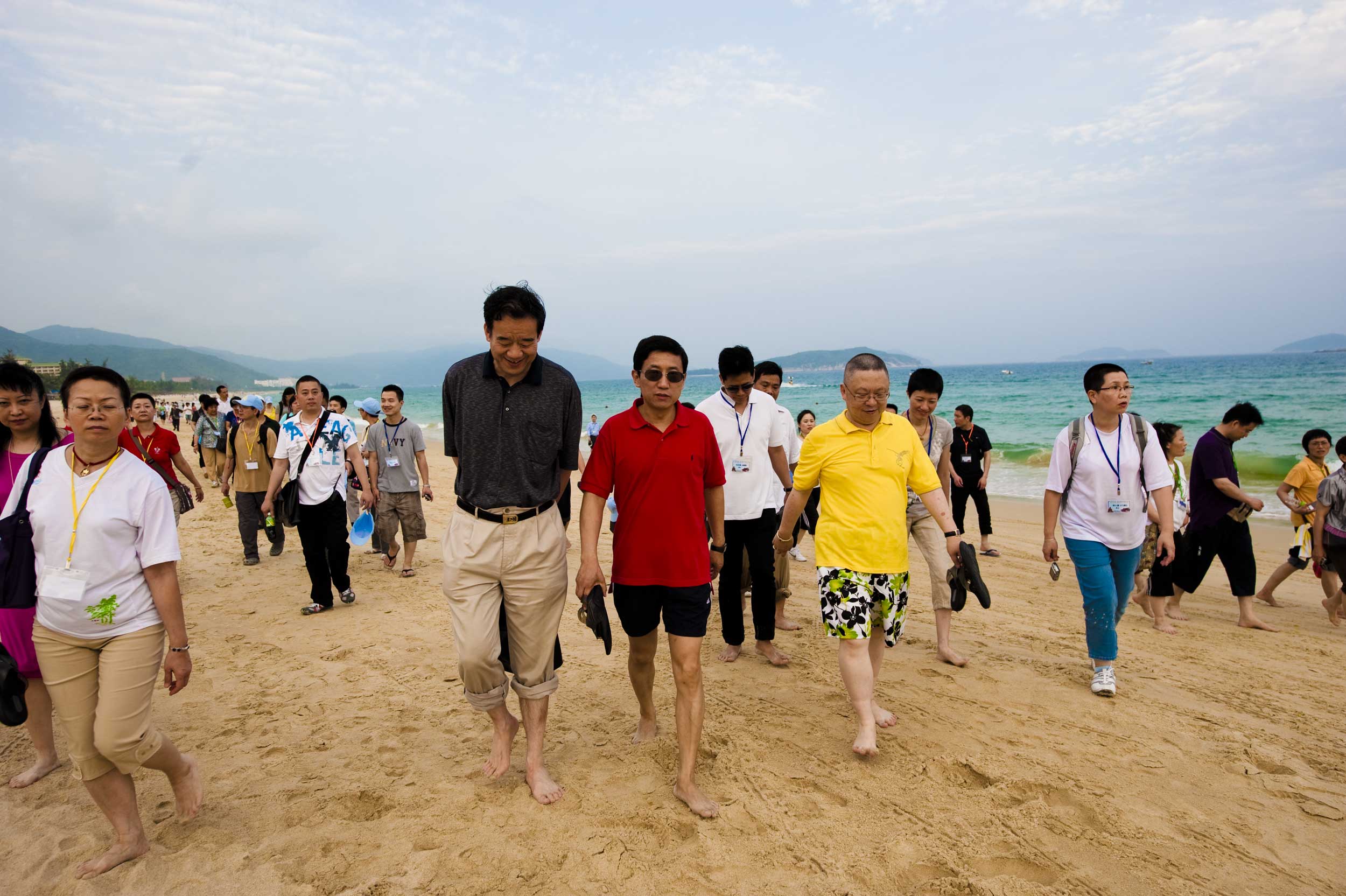 在大師及張躍莉政協委員的陪同下,蔣堅永副局長及海南省民宗廳陳志榮廳長步入沙灘,享受三亞的沙灘活氧!